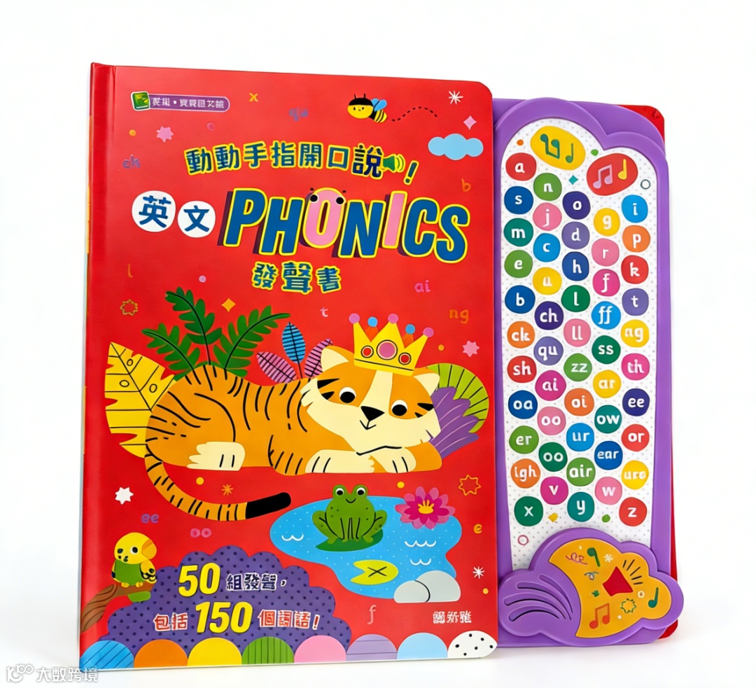 本書包含50個英文拼音的發音,包括:26個英文字母的發音、輔音組合的發音(如:ch、ff)、元音組合的發音(如:ai、ee)、3個字母組合的發音(如:air、ure)。每個發音還附帶3個詞語,搭配貼合幼兒認知的童趣插畫,讓幼兒練習英文拼音之餘,同時增加詞彙量。