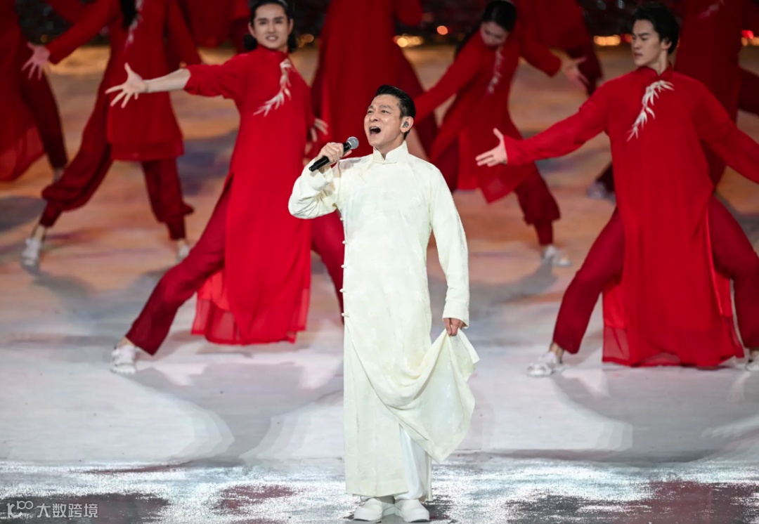 75分鐘的開幕式晚會全程高能,亮點不斷——同心圓水舞台波光粼粼,把「大海」直接搬進體育場,粵港澳三地運動員同步入場、同升國旗,儀式氛圍感直接拉滿。從機器人奏響嶺南經典《彩雲追月》,到巨型鰲魚花燈騰空躍起,再到「華仔」劉德華引領全場齊唱《中國人》......一幕幕名場面刷屏網絡,不少網友直呼:「春晚不如交給大灣區辦!」