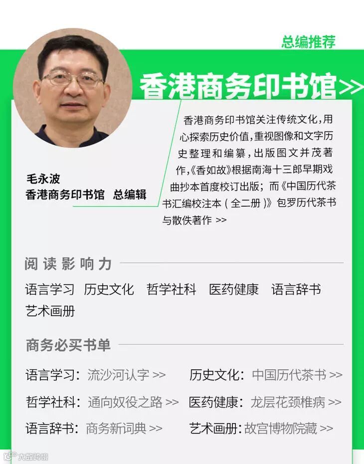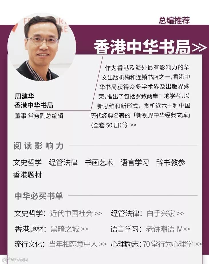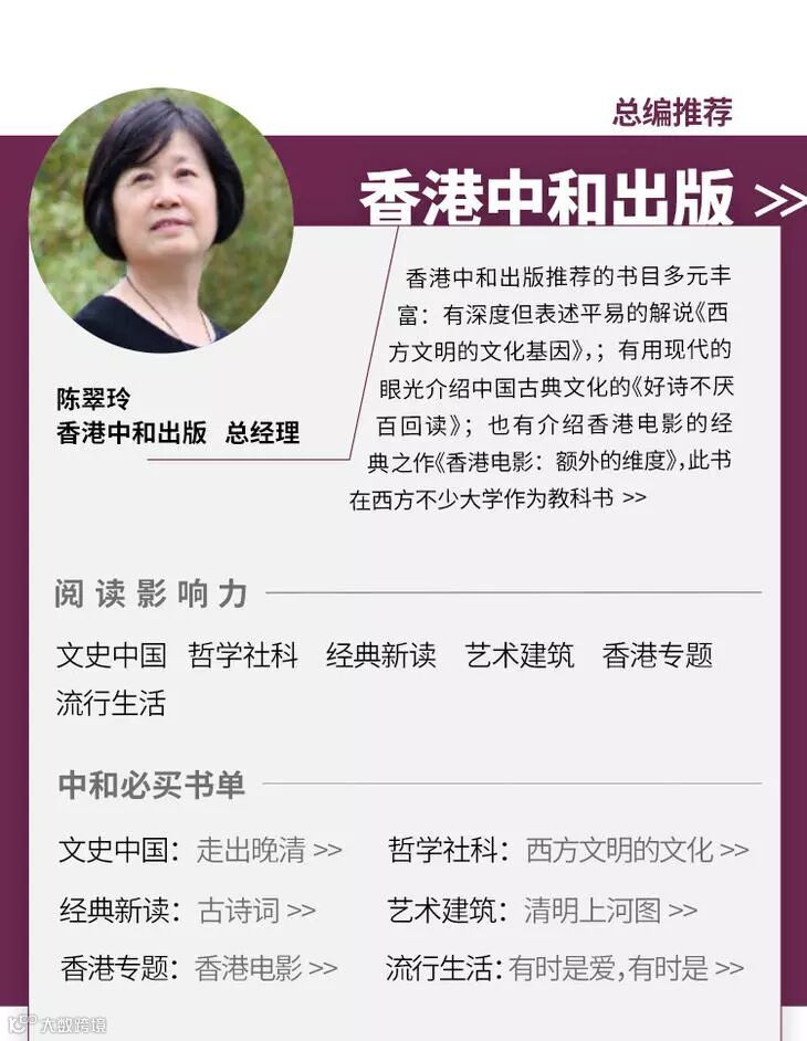 為了迎接雙11的到來,聯合出版集團屬下的三聯書店、中華書局、商務印書館、萬里機構、新雅文化事業、香港中和等六家出版社都做了精心準備。各單位在天貓店開設專區,為天貓讀者精心推薦數百種新書好書,包括文史中國、香港題材、流行讀物和文史鑒賞等,同時各單位總編輯或總經理還專門為天貓讀者重點推薦了本單位的20種精品力作,幫助讀者認識香港、認識世界。