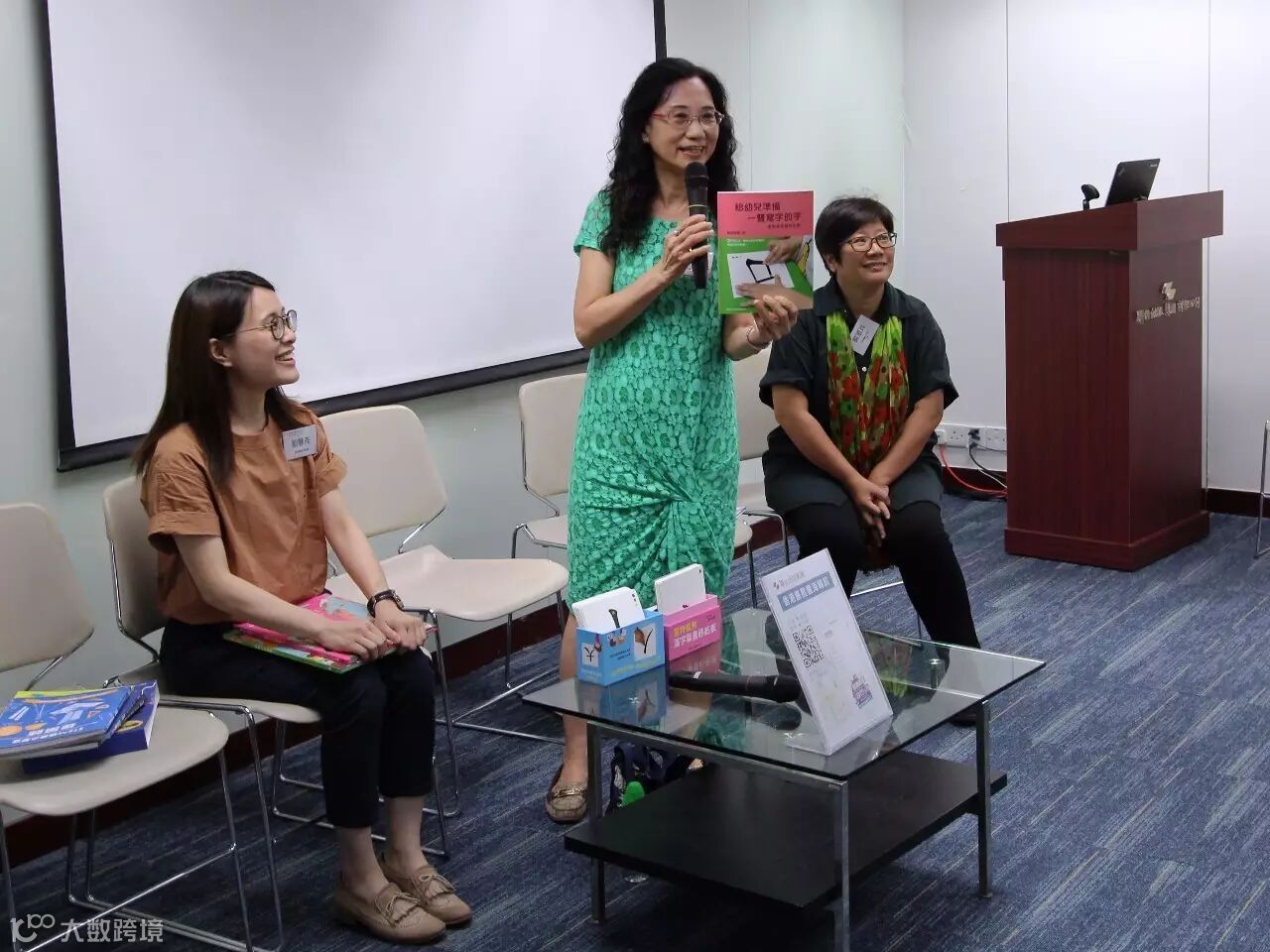 新雅出版社代表(左)、嚴吳嬋霞(中)和蔡姨姨(右)介紹新作