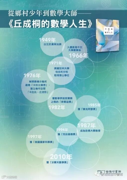 商務印書館於2017年推出《丘成桐的數學人生》,輯錄了丘教授多年來的學術演講和文章,紀錄丘教授在數學路上的點滴。