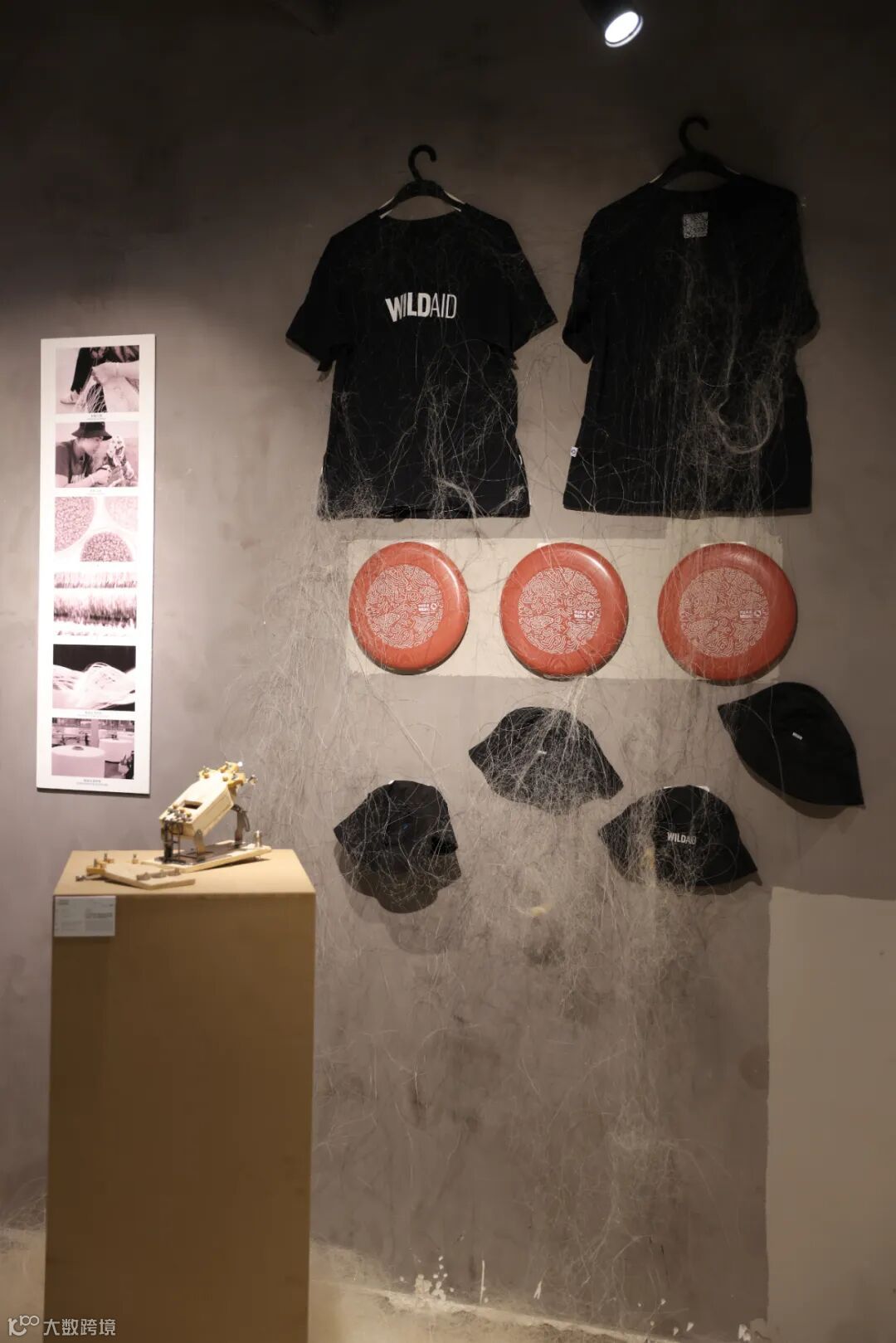 野生救援举办的“一网无弃保护海洋艺术展”向公众展示用回收的废弃渔网再生制造的T恤、飞盘和帽子