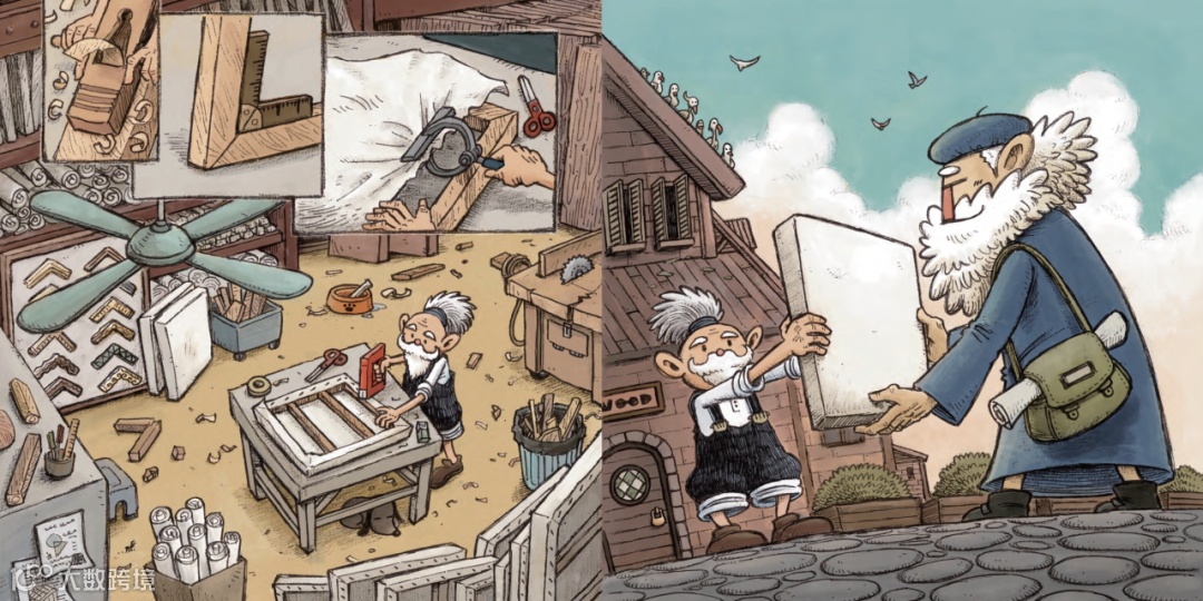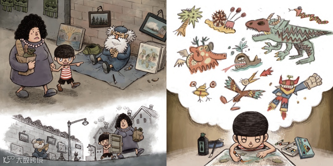 小男孩用一個麵包跟畫師交換了畫布,回到家以後,他愉快地在畫上繼續繪畫、創作,畫布為他帶來了金錢無法衡量的快樂。