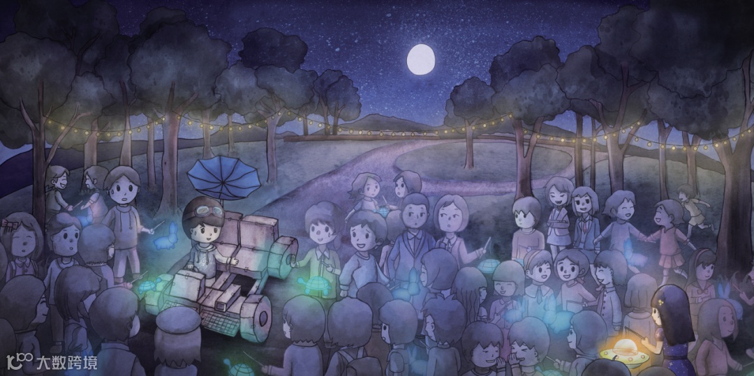 中秋節當天,小男孩製作了一輛「月球車」,邀請路人跟他一起乘搭。但路人大多手提燈籠,只當他是個奇怪的人。