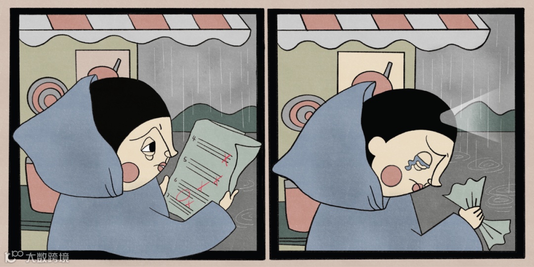 小男孩考試不合格,他無奈地拿着試卷,默默地閉上眼睛……