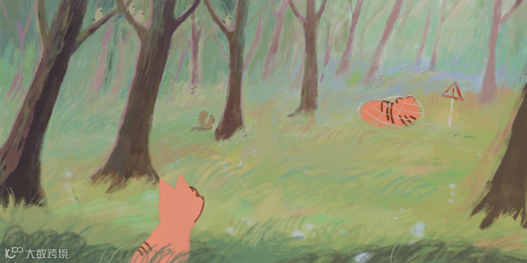 走進寧靜樹林的小貓,遇見一隻龐然大物,從牠的背影,也感覺牠並非善類……
