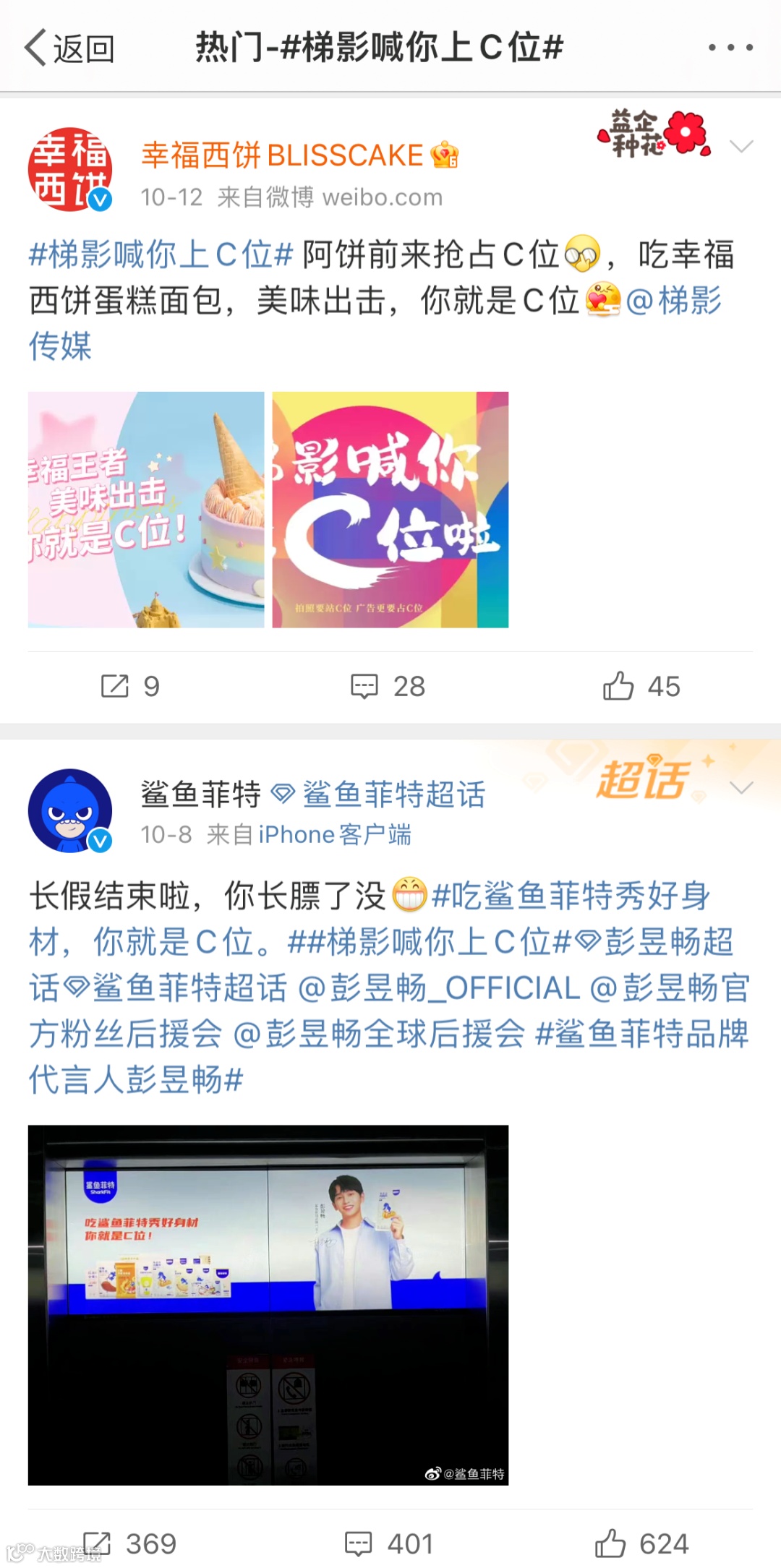 在线下电梯场景,梯影大屏占据了都市白领们通勤的最后一环。在线上传播渠道,梯影传媒在微博发出C位征集,与品牌方展开热烈互动,实现线上线下联动,打通品牌营销闭环。