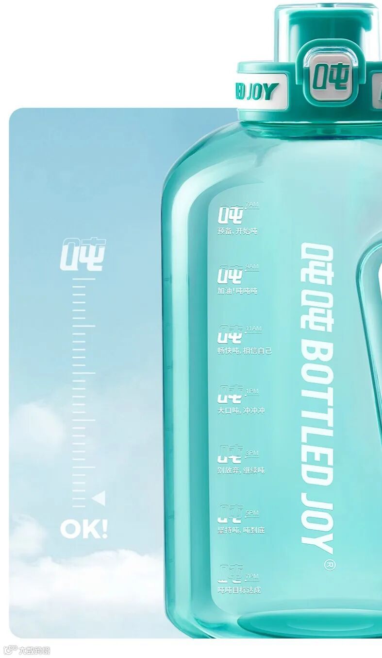 终于,一款大容量、桶身印有饮水刻度提示、人体工学哑铃把手的吨吨杯应运而生。