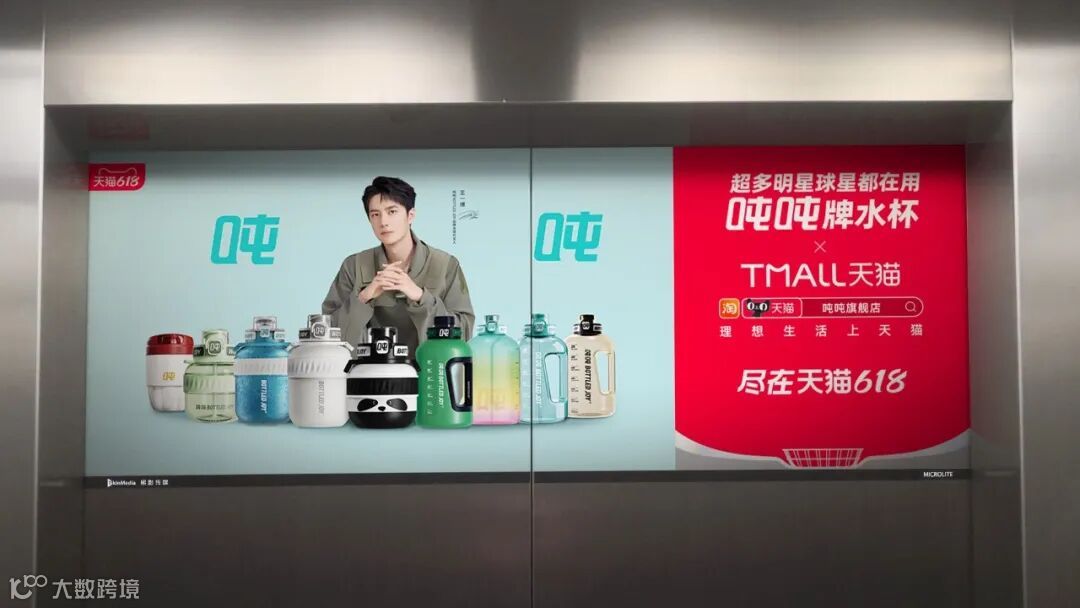 在618活动前期,吨吨BOTTLED JOY携手代言人王一博,强势登陆全国八城梯影大屏,集中攻占消费者心智。梯影大屏为品牌抢夺市场流量、实现销售转化提供了强有力的支持。