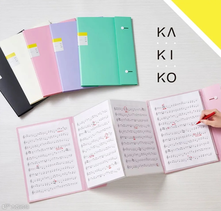 Kakiko開放式文件夾曾獲日本文具大賞文件夾類第一名。上下夾蓋設計,可牢牢地固定A4/A3文件或樂譜。附有筆夾,當創作靈感來的時候,方便直接書寫。