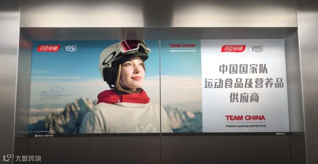 2月,谷爱凌作为合作伙伴代言人,“闪现”梯影大屏。