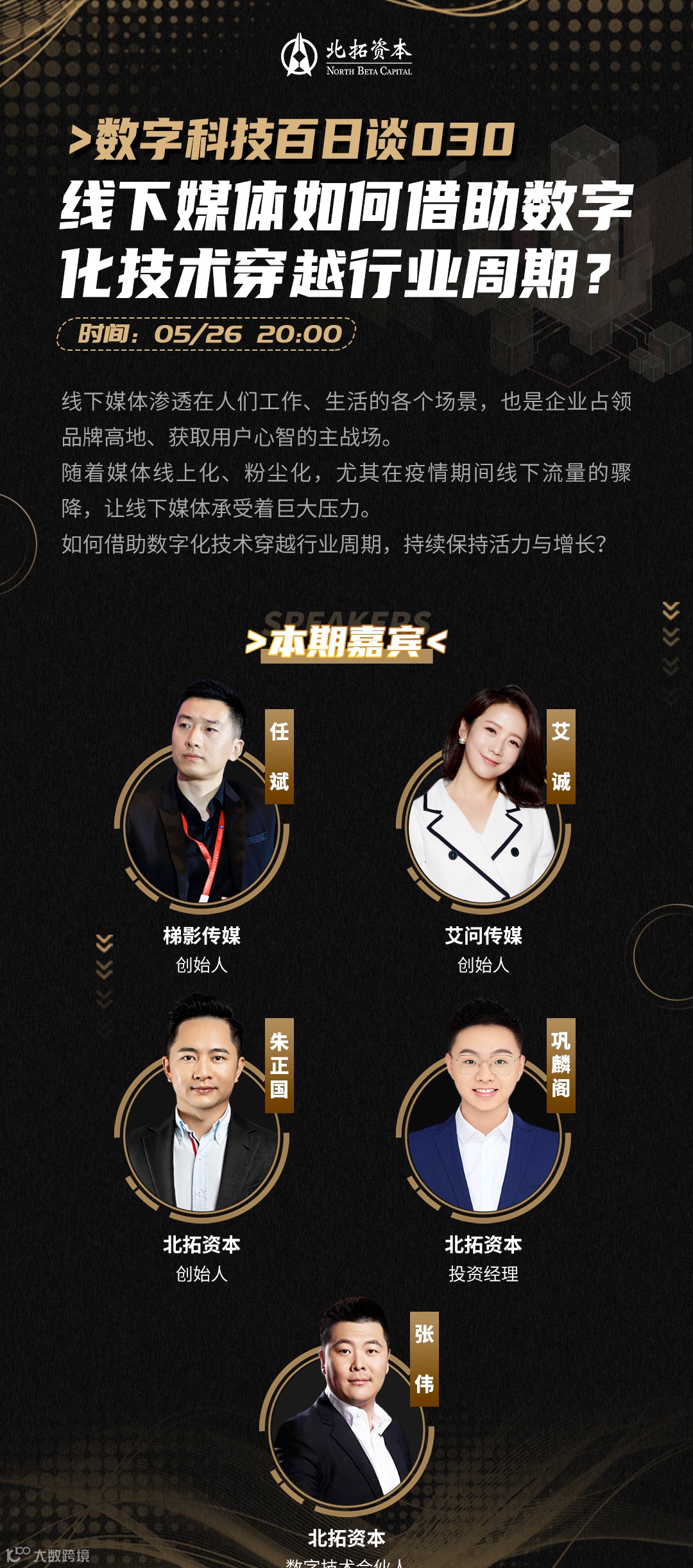5月26日,梯影传媒创始人任斌受邀参与数字科技百日谈线上直播,与艾问创始人艾诚共话“线下媒体如何借助数字化技术穿越行业周期”。