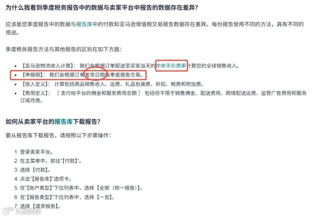 亚马逊统计的是收款口径,很多卖家报税用的是发货口径;