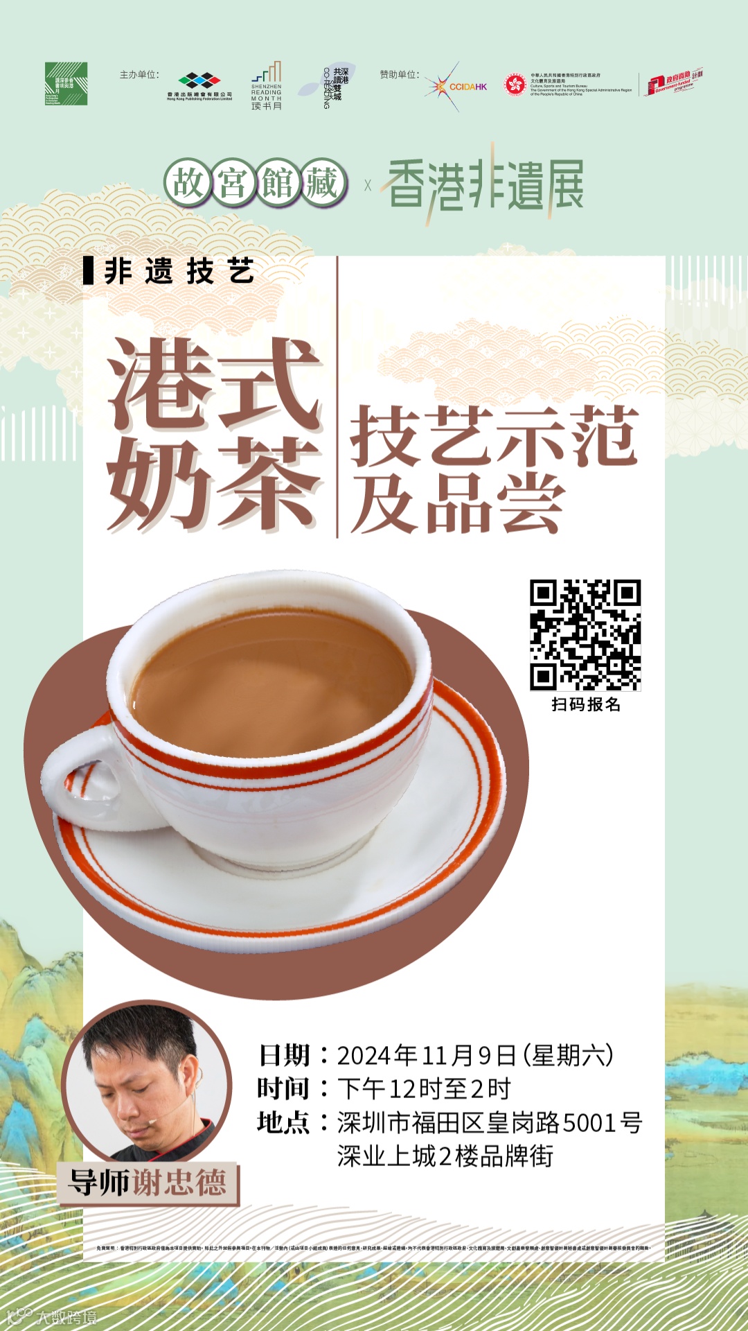 活動簡介:由資深奶茶師傅細說港式奶茶的歷史和發展,並示範沖調技巧,分享經驗與心得。參加者既可品嚐香滑奶茶,更能學習香港非遺技藝。