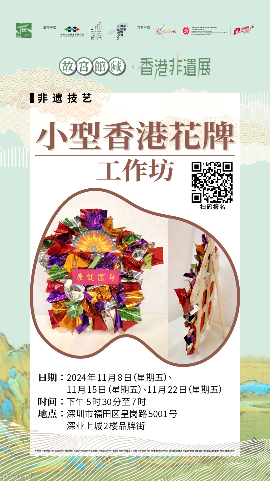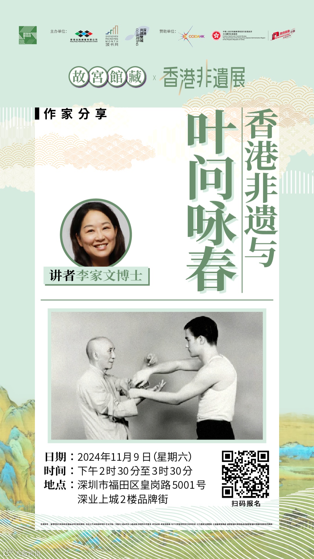 除以上18場工作坊與分享會活動之外,本次深圳讀書月深港「共讀雙城」系列活動還有「故宮館藏書畫作品欣賞1」、「故宮館藏書畫作品欣賞2」、「深港出版:傅偉中&唐漢隆對談」等3場分享會正在計劃中。