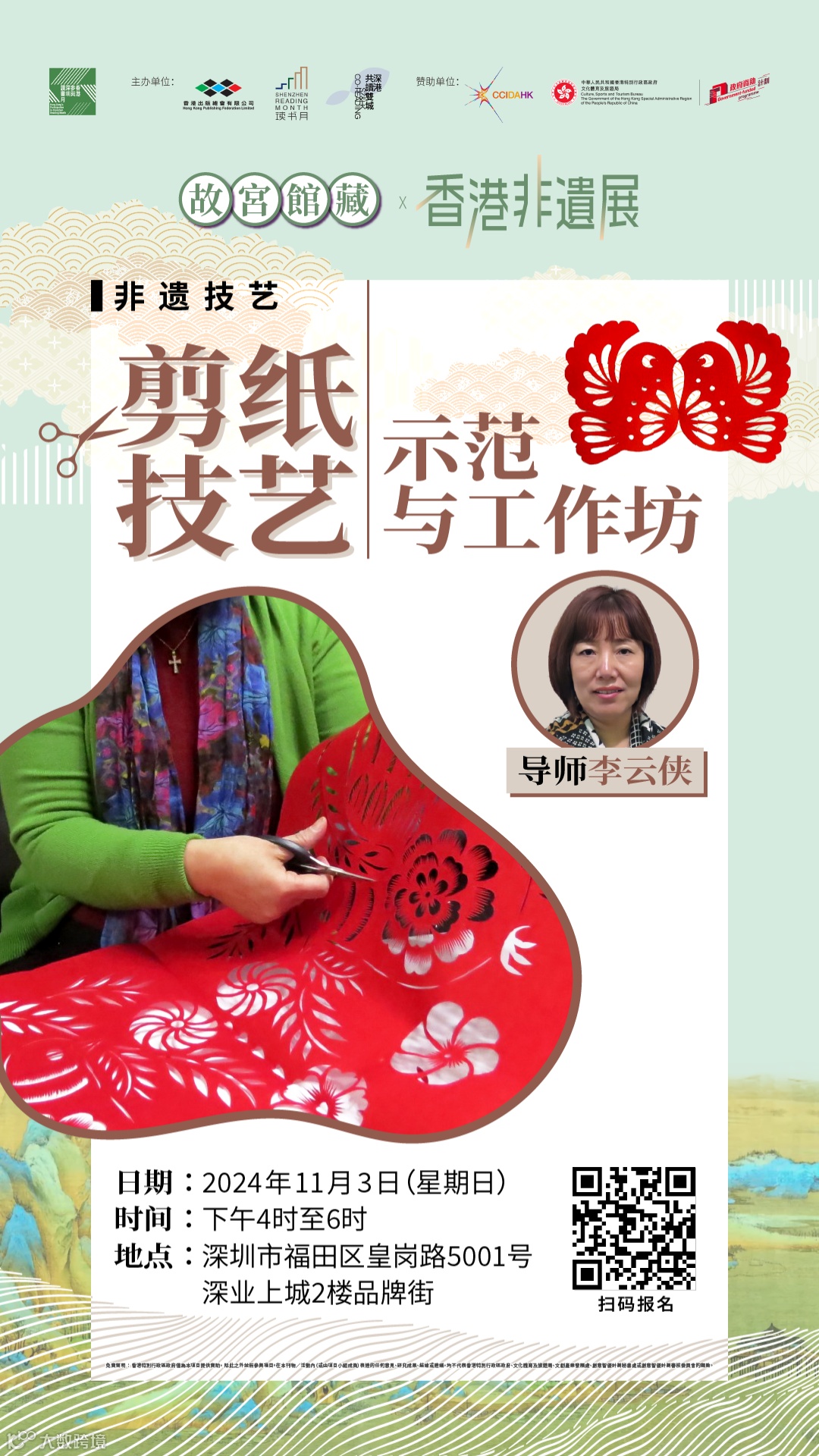 導師簡介:李雲俠,資深剪紙藝術家,剪紙藝術第三代傳人。
