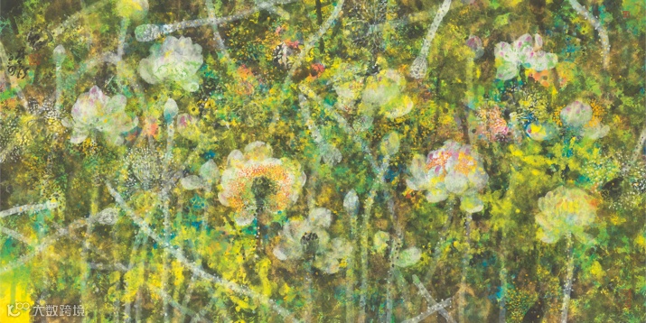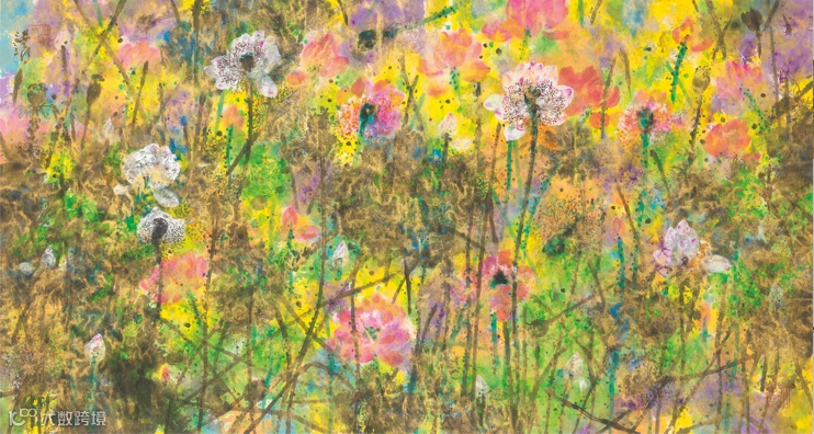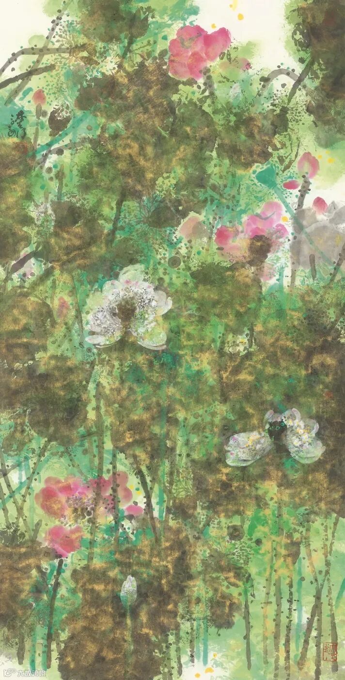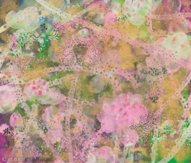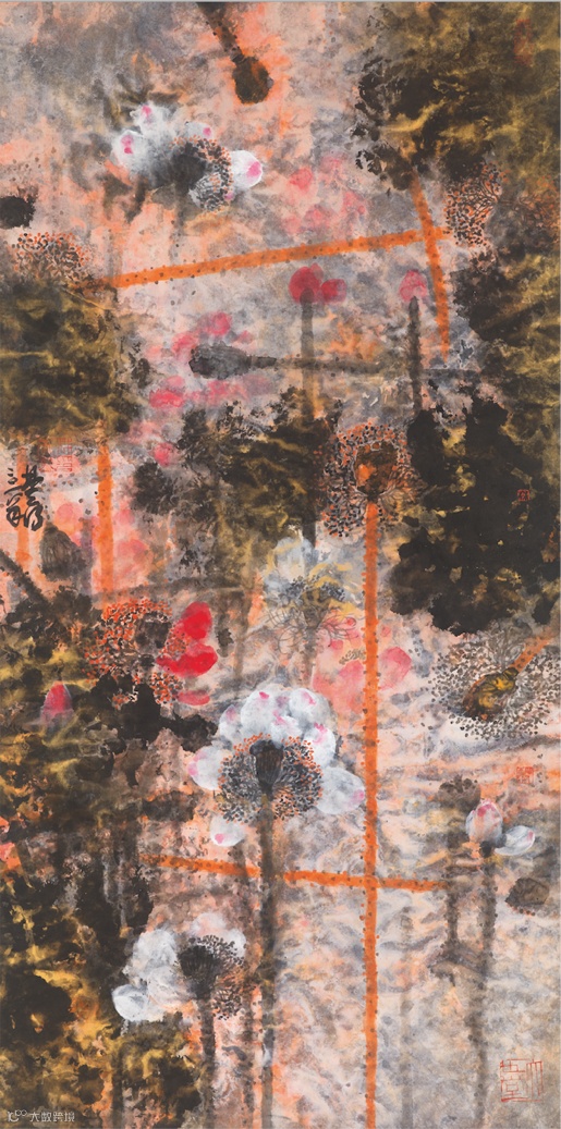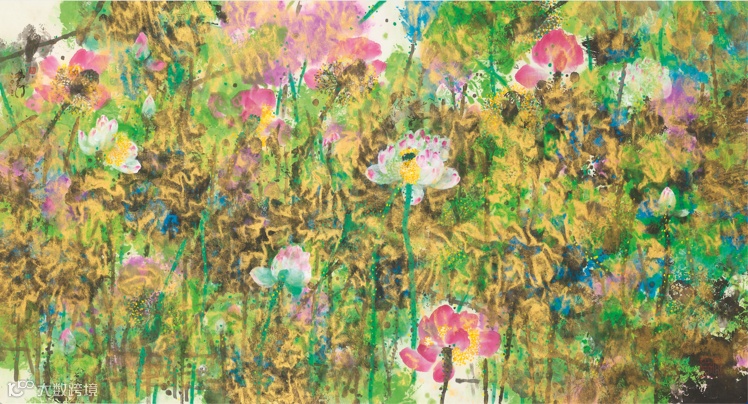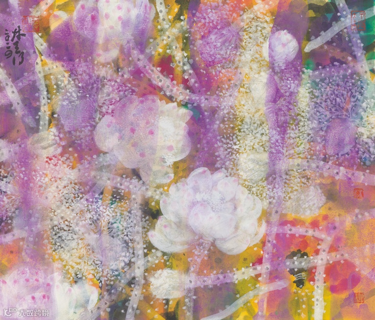 他今次的展覽取名「百荷呈祥」,展出的100幅畫作均為近年新作,以荷入題、再由荷想及世間萬物與百樣人生,寓意吉祥,是畫家最美好浪漫的祝福。百幅荷花,各有姿彩,繽紛多元,意境暢達,既有蓬勃活力又不乏神秘高遠之感,餘韻嫋嫋不絕。畫荷,又不止於荷。