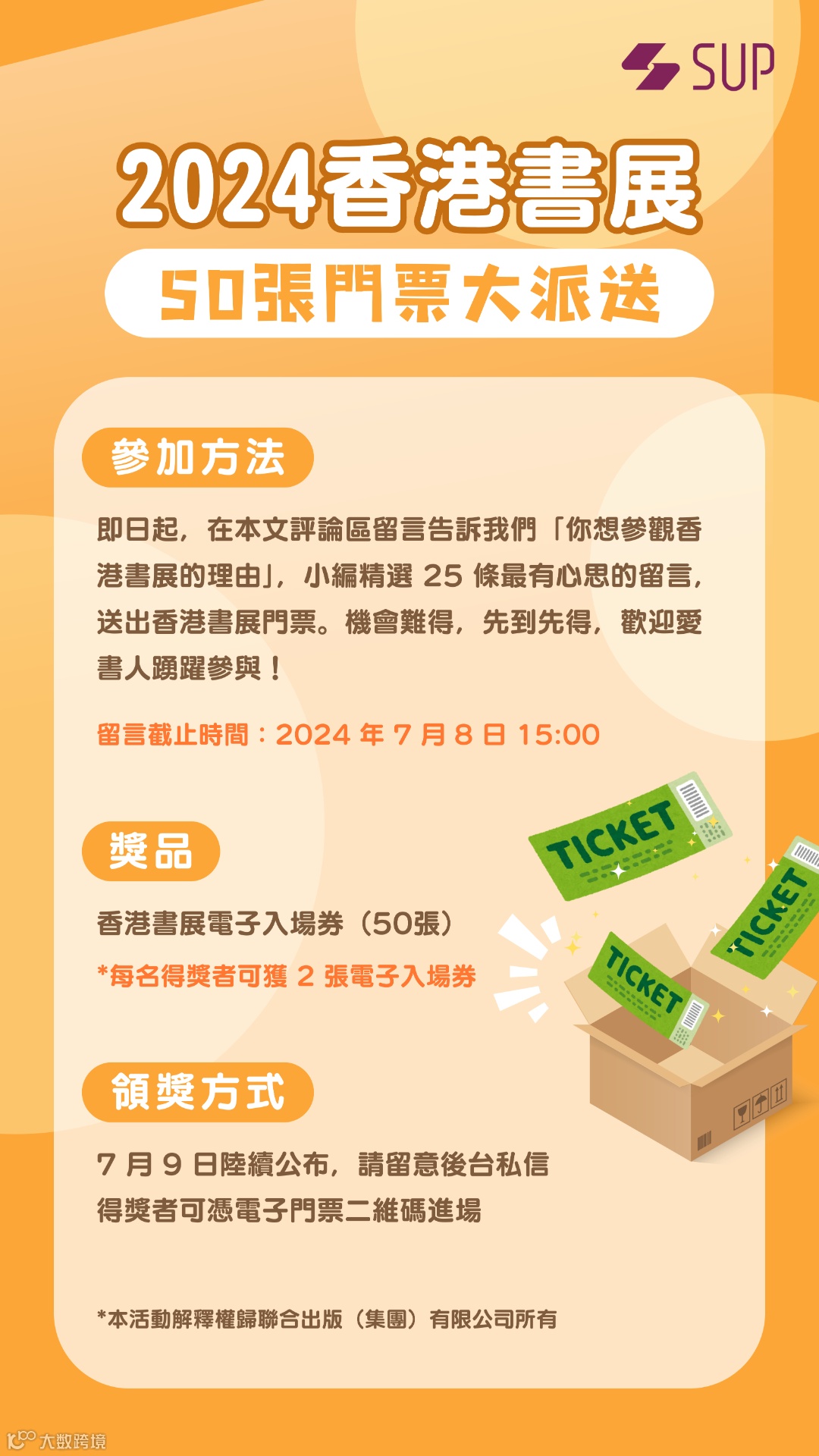 更多2024香港書展特色好書、精彩講座等相關資訊,將於近期陸續放送,敬請持續關注!