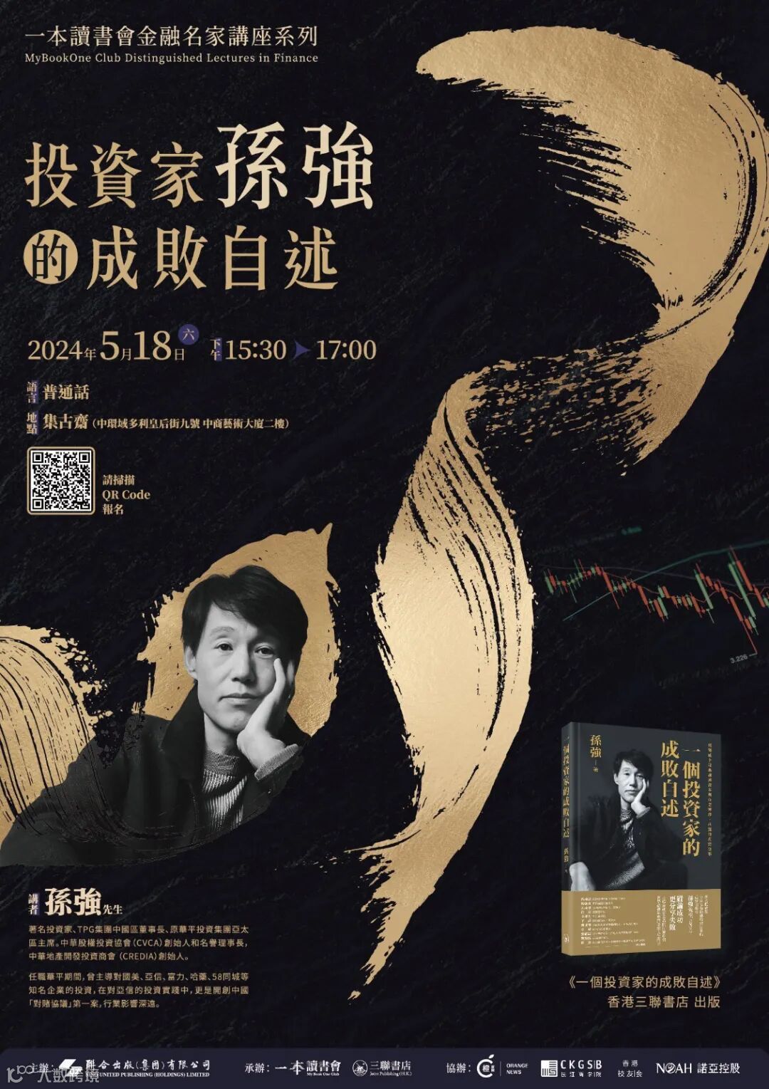5月18日,孫強先生將攜新書《一個投資家的成敗自述》(繁體版)做客「一本讀書會」,分享他個人的成長經歷以及作為中國私募股權投資行業重要開拓者的投資實踐;既縱論成功,也分享失敗。講座內容,將遠遠超出私人經歷與故事的範疇,足以給金融從業者以行業指引,給青年奮鬥者以人生啟示。