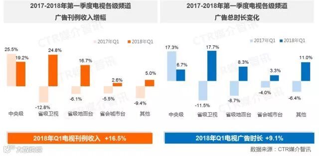 ● 电视、广播媒体的广告时长增幅分别为9.1%、3.7%,加之刊例价格的上浮,电视、广播的广告刊例收入分别增长了16.5%、15.8%。
