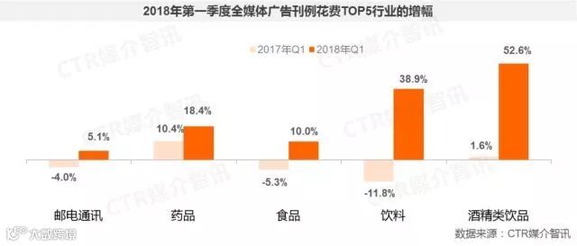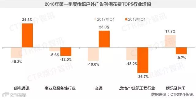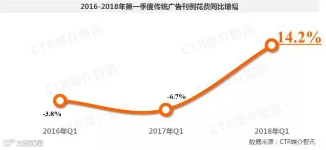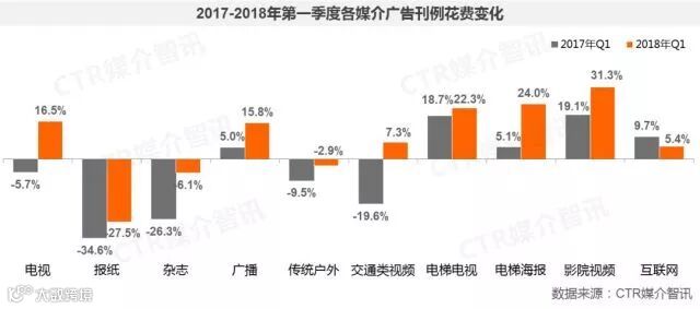 ● 2018年一季度,中国广告市场出现了低位反弹,传统媒体的止跌回升给予广告市场整体增长更大推动力。