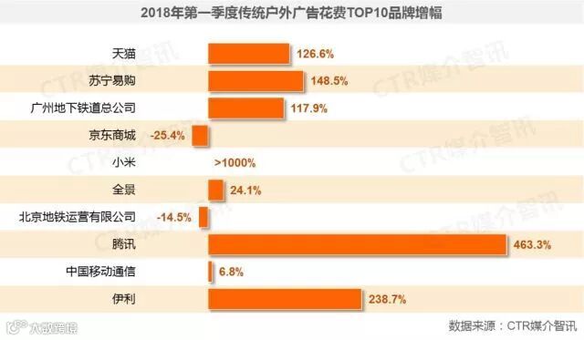 ● 食品饮料行业在传统媒体的广告花费增幅明显,食品行业中的保健食品,饮料行业中的婴幼儿奶粉、茶饮料的增投明显。网站和手机软件在户外生活圈媒体的广告投放增幅较大。