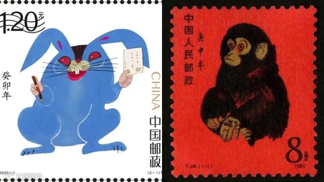 圖 | 黃永玉設計的兔年(左)和猴年郵票