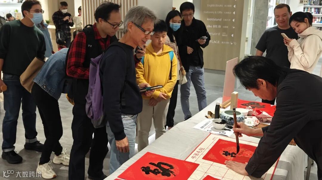 在各店活動現場,藝術家們揮毫潑墨、躬身提筆、一起一落間,一幅幅飽含年味的「福」字便躍然紙上。活動吸引了眾多香港市民前來觀賞,排隊「求字」的市民絡繹不絕。