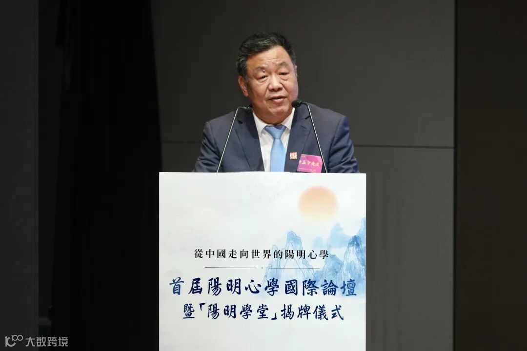 貴州省委常委、省委統戰部部長郭強先生致辭時表示,五百多年前王陽明創立了獨具一格的心學體系,此後陽明心學流傳中國,影響東亞,走向世界。陽明心學心即理的人生論,致良知的修養論,事上磨的認識論,知行合一的實踐論凝聚着中華優秀傳統文化的精華,必將在大變革的當今迸發出更加光輝的時代價值。他談到王陽明與貴州早有淵源,在貶謫貴州之時,留下多部傳世名篇,陽明文化成為貴州鮮明的標識,也是公認的陽明心學誕生地。他提出四點倡議:一是以「香港陽明學堂」為平台,匯聚世界各地專家學者,助力陽明心學的國際傳播;二是以陽明心學國際論壇為載體,定期組織學術研究及交流;三是以建設中華民族現代文明為使命,充分挖掘陽明心學的價值;四是通過陽明心學促進文明交流互鑒。最後,他借用王陽明「此心光明,亦復何言!」與在座嘉賓學者分享。