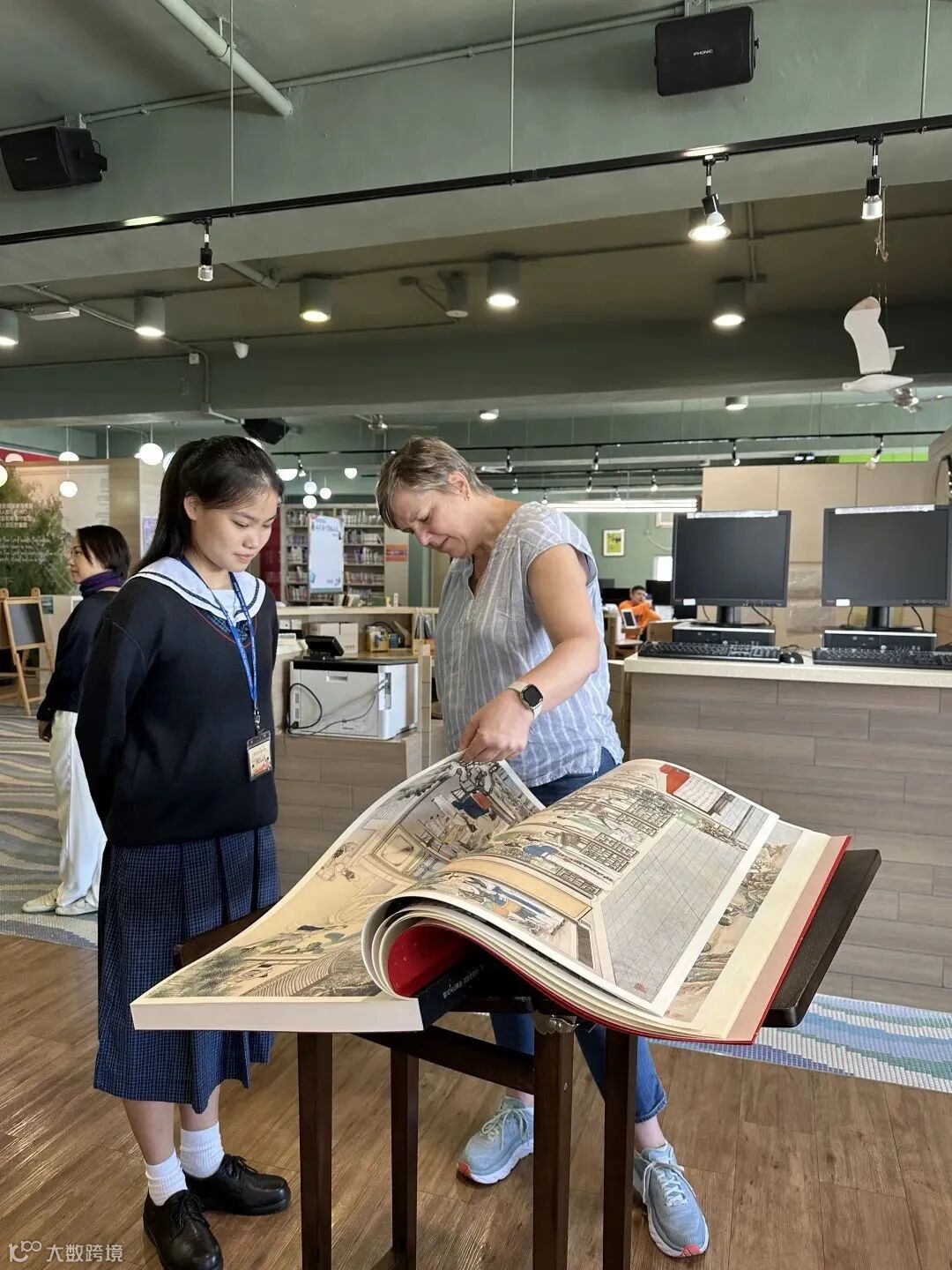 很多同學第一次玩AR尋寶,好奇虛實共生的設置;也有同學是第一次體驗VR,感受720度立體閱讀。與機器人面對面互動,也趣味盎然......當然,翻閱傳統文化大書,也有別樣體會。