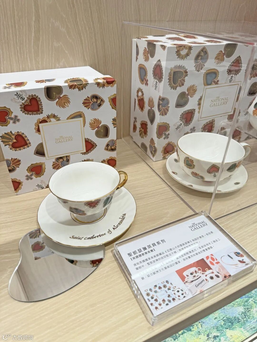 靈感選取自英國國家美術館藏品《亞歷山大的聖凱瑟琳》。在拉斐爾眼中,聖凱瑟琳的信仰堅定不移,如骨瓷般堅韌耐磨。而骨瓷透光性強,以高溫燒製,質地堅韌輕薄透光。茶具採用手工描金工藝,結合歐洲文化藝術設計圖案,同時兼具實用與藝術的雙重價值。