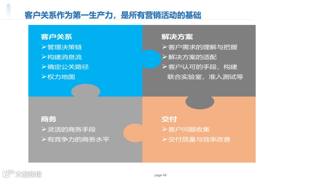 表现:销售、产品、交付各部门“语言体系割裂”,如销售谈“关系”,产品谈“技术参数”,交付谈“成本”,缺乏统一的“客户价值坐标系”。
