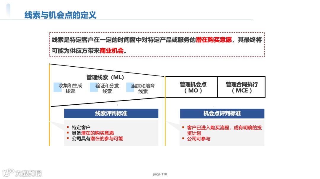 统一术语:如明确“线索”(潜在需求)与“机会点”(进入采购流程)的定义边界;
