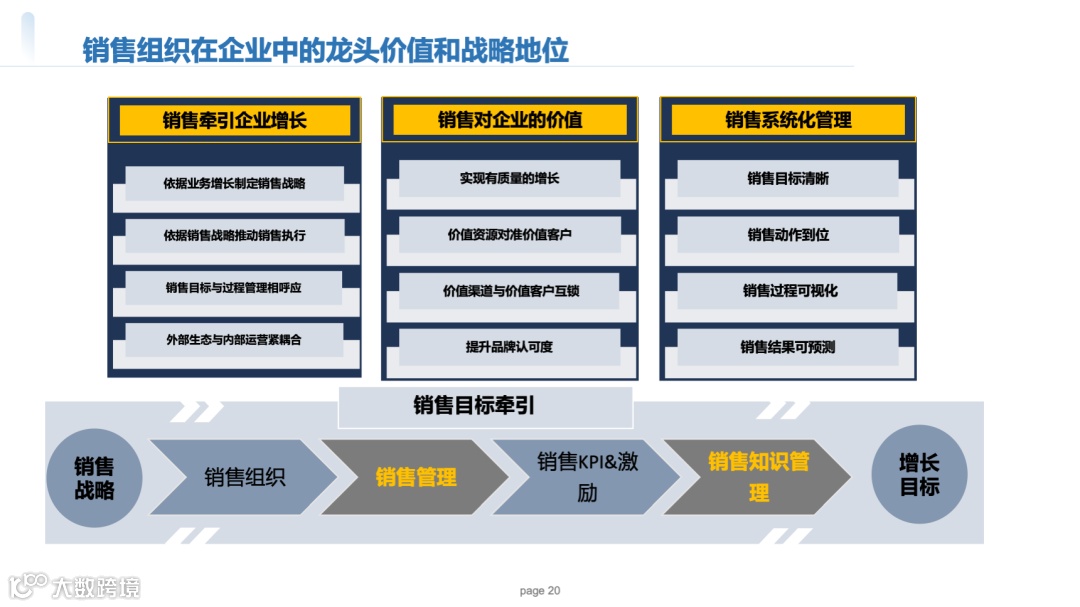管理销售运营:目标制定→预测→绩效分析。