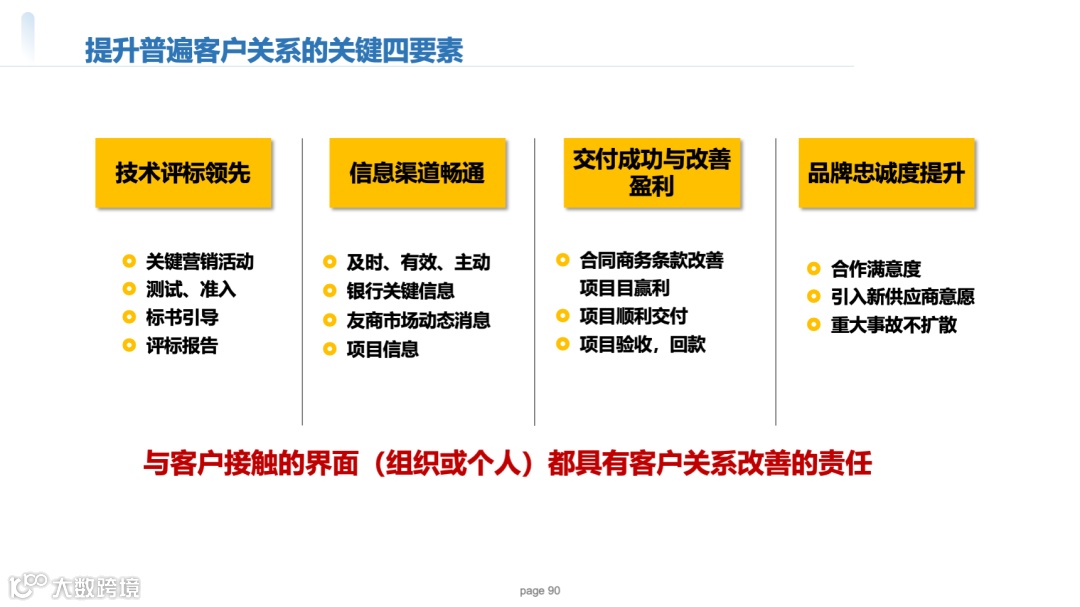 标前引导:客户高层拜访→技术交流→样板点参观,如某项目通过“邀请客户CTO考察华为深圳研究所”,提前锁定技术标准话语权;