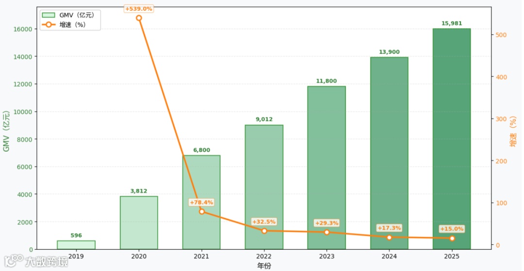 电商已成为快手关键增长点。2019年GMV仅596亿元,2025年飙升至1.6万亿元,增长27倍,规模稳居国内前五。