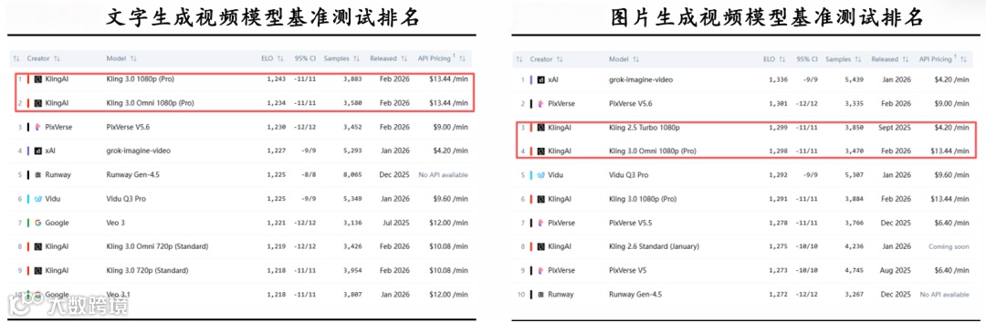 AI视频生成赛道前景广阔:预计全球市场将从2025年30亿美元增至2030年290亿美元。可灵AI技术竞争力突出,3.0Pro在文字生成视频基准测试中位列全球第一。