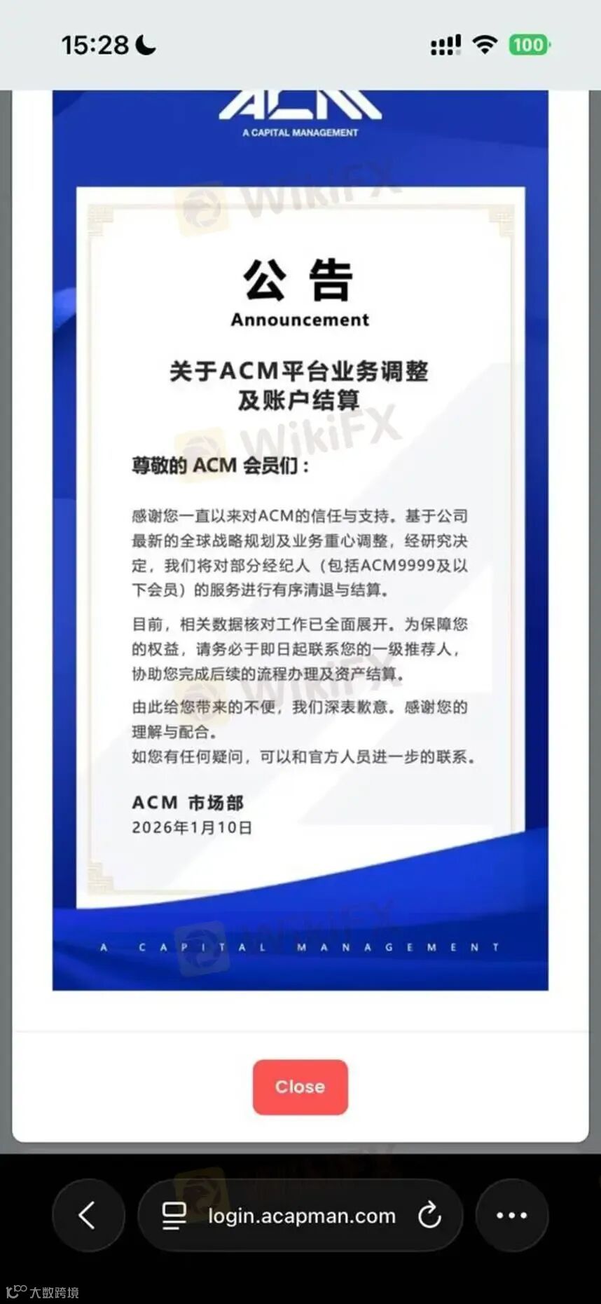 ACM主推“C仓模式”,宣称提供1:1信贷额度,实则将用户本金转移至托管账户并承诺月收益10-15%。2026年1月公告“有序清退”后,仍存在出金拖延超月余、状态长期显示“待处理”问题。
