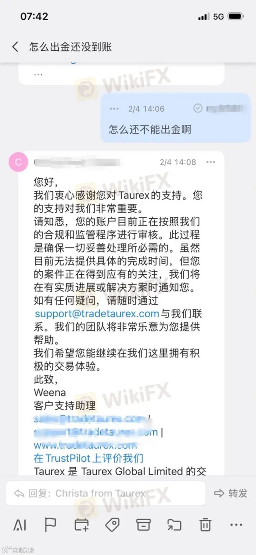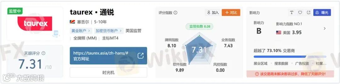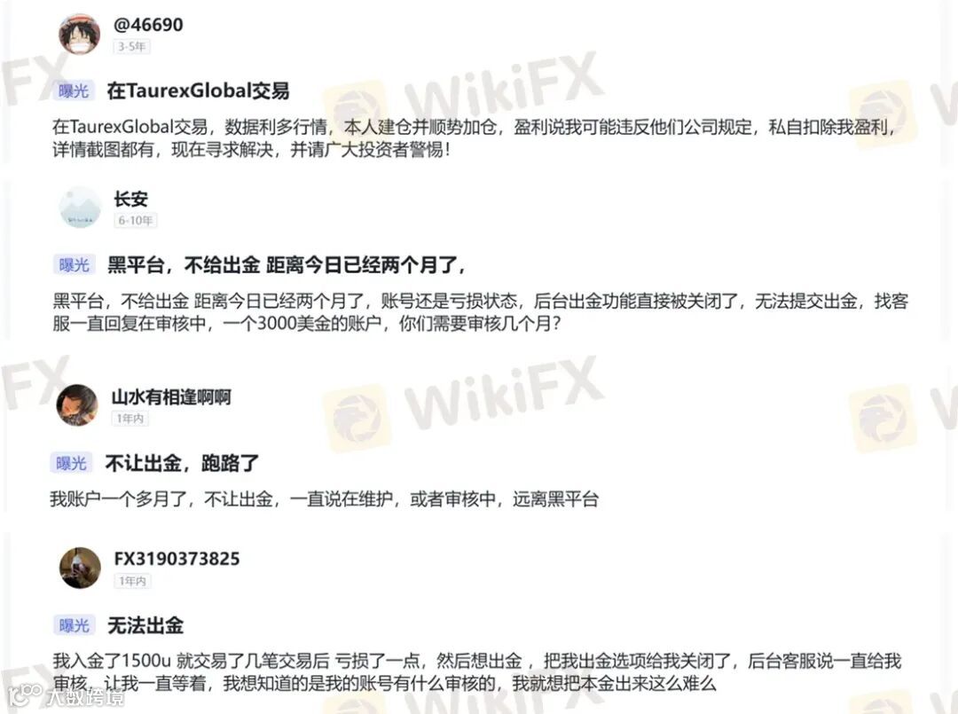 Taurex虽持有英国FCA牌照,但实际通过塞舌尔FSA监管的TAUREX GLOBAL LIMITED运作。用户集中反馈资金被恶意扣除、交易数据篡改、盈利订单遭删除等问题,部分出金申请审核超两个月未果。