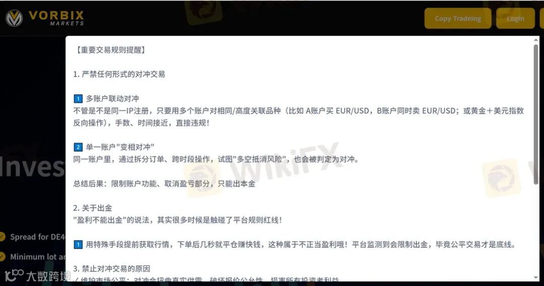 该平台未公示任何监管资质,却在全英文界面发布中文公告禁止“变相对冲”——例如做多黄金后不得交易欧元美元或其他相关品种。违规将导致盈利被取消,仅退还本金。