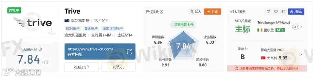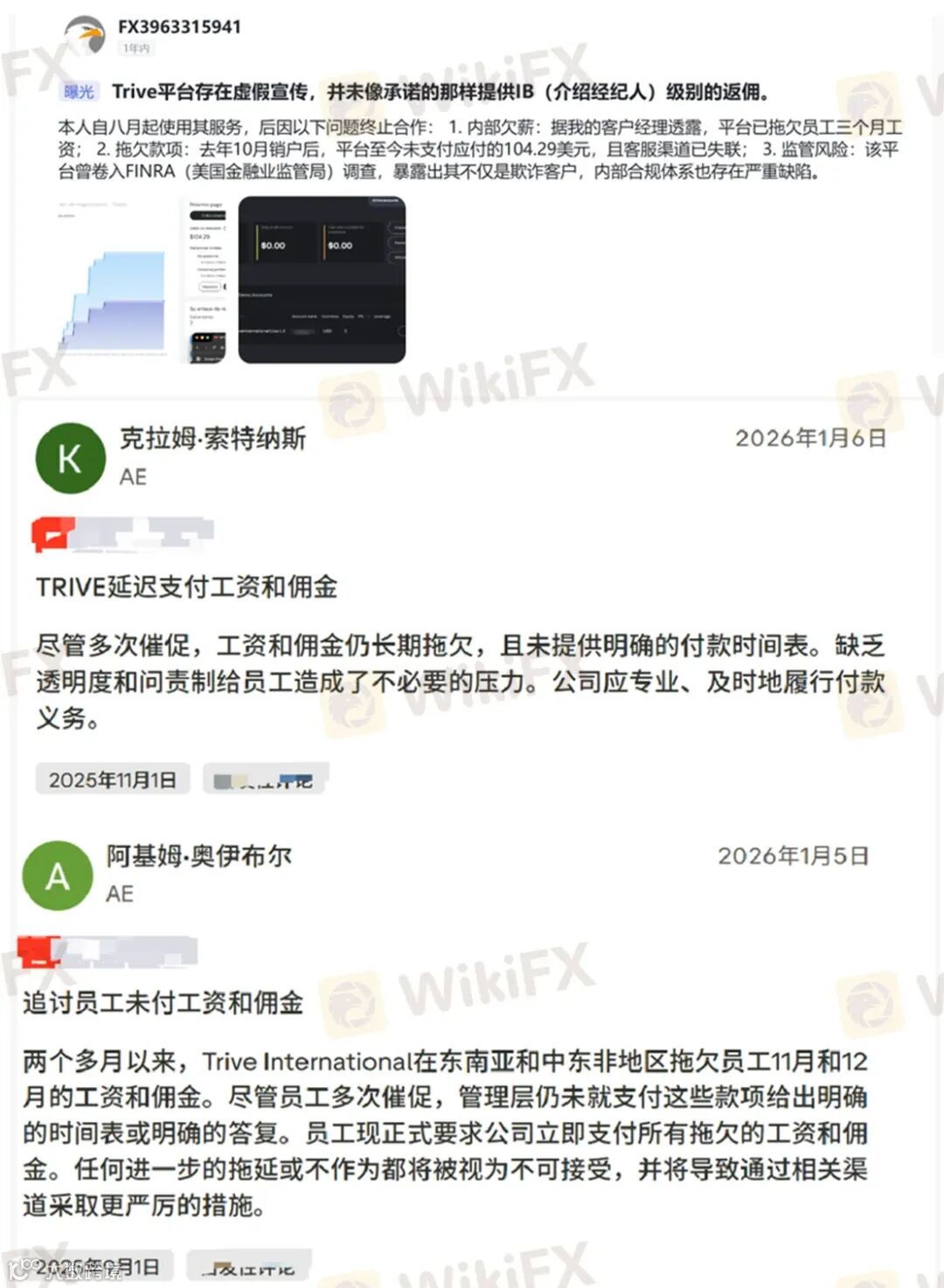 平台财务状况严重恶化,已连续数月拖欠员工薪资与佣金。英国持牌公司账目显示,Trive International Limited拖欠342.9万英镑债务,审计师判定该款项难以收回。外汇天眼数据显示近半数投诉涉及盈利无法出金及交易记录异常扣除,投资者需高度谨慎。