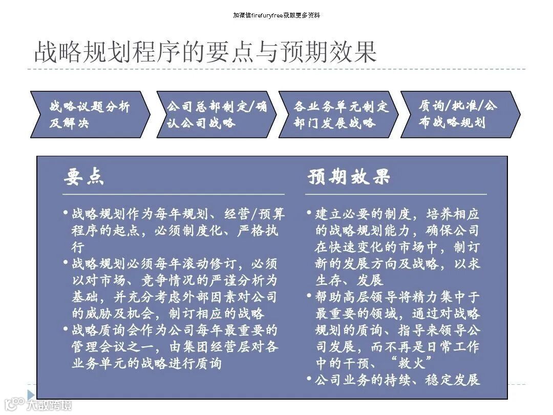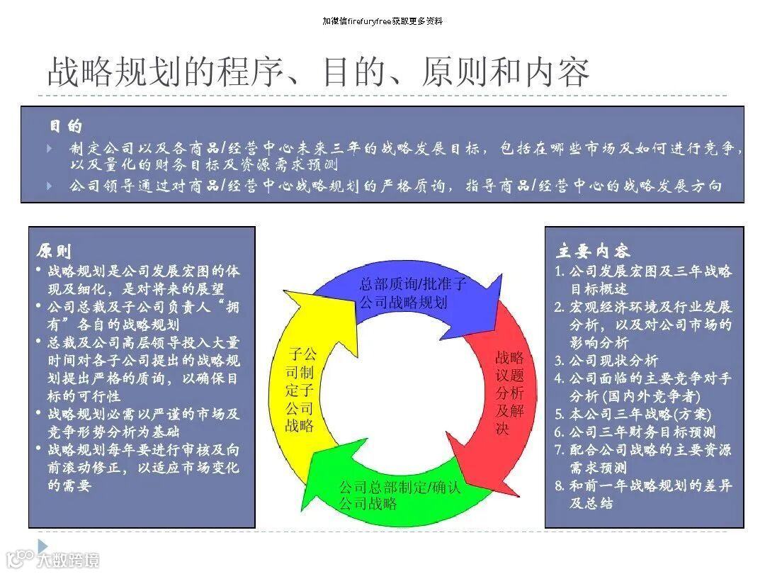 定位:作为企业年度规划、经营/预算程序的起点,必须通过制度化严格执行,形成企业发展的“核心纲领”。