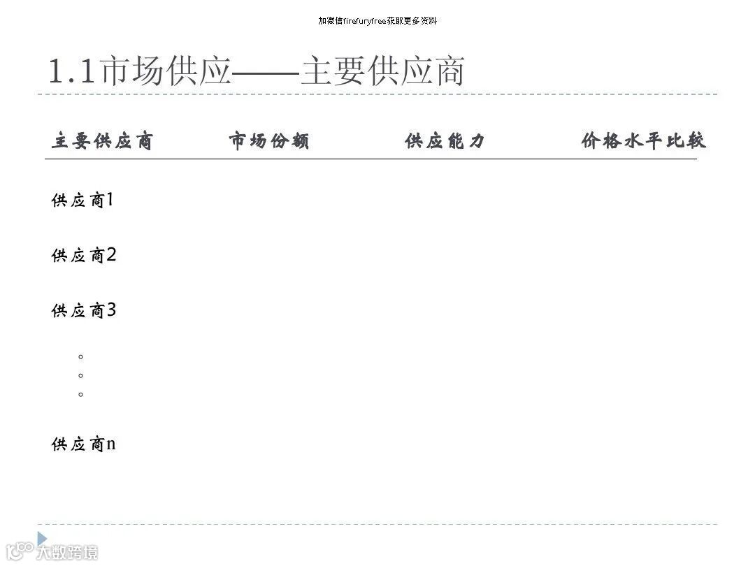 案例:若某原材料仅由3家供应商提供,企业议价能力弱,需考虑垂直整合或寻找替代源。
