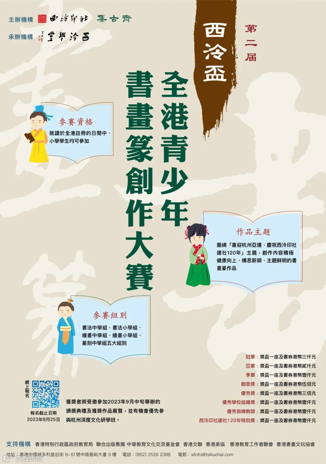 2023年是香港回歸祖國26周年及「西泠印社」建社120年,同時也將於杭州舉辦第19屆亞運會。值此盛事雲集之年,西泠印社、集古齋主辦第二屆「西泠盃」全港青少年書畫篆創作大賽,推動香港青少年以及社會各界弘揚中國藝術文化,推廣中華優秀傳統文化在香港的普及、傳承和發展。