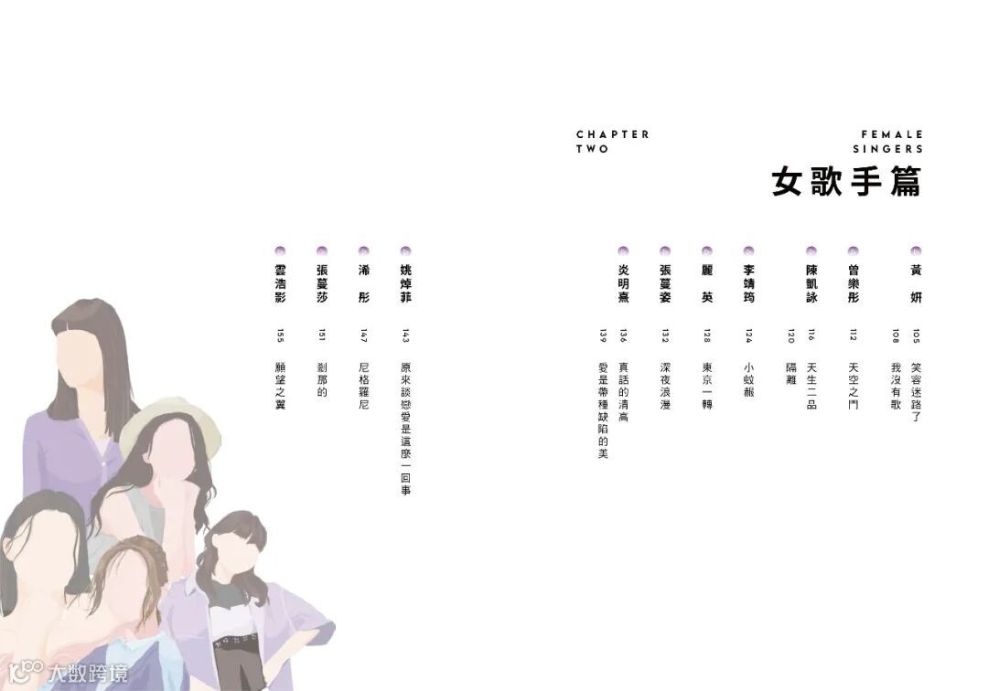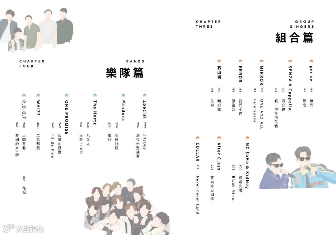 本書以香港樂壇近五年出道的新生代歌手為主題,分為男歌手篇、女歌手篇、組合篇及樂隊篇共四個篇章,為大家介紹了來自37組歌手的60首廣東歌。除了文字以外,每組歌手都配以了專屬的插畫形象。這次採用了四色印刷,封面和內頁都是彩色印製,視覺上也更豐富好看。