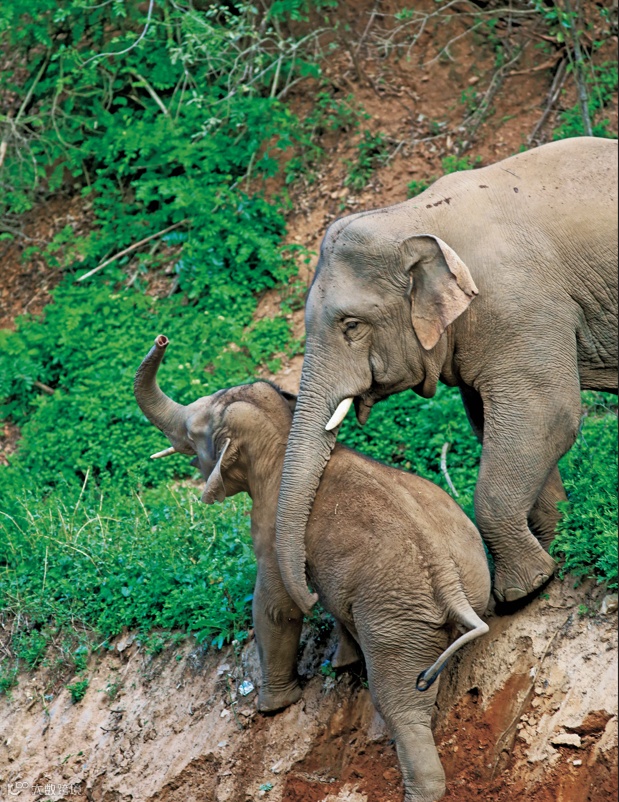 夏季,云南西雙版納等地十分炎熱,蚊蟲反覆圍繞着小象打轉,小象不耐煩地甩動尾巴驅趕。此時如果出現一個泥塘或者灌溉坑,就是小象最喜歡的地方。牠們會迫不及待地扎進泥塘,有的選擇從水塘邊滑進去,有的則推搡着跳了進去,一起在泥塘裏玩鬧嬉戲,玩得不亦樂乎。遇到陡坡處,大象還時常用功能強大的鼻子,幫小象一把。這充滿童趣、天真爛漫的情景,讓人不由得對大象們萌生愛意。