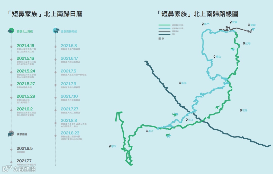 圖 | 「短鼻家族」北上南歸日曆及路線圖