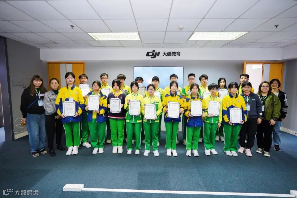 研學團第二站到達南沙資訊科技園,感受南沙智造魅力。由大疆教育工作人員授課,向澳門師生講述飛行啟夢、機甲初體驗等課程,並讓一眾師生學習動手操控無人機及機甲大師。