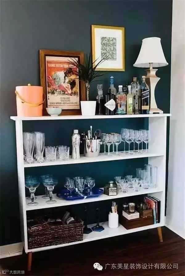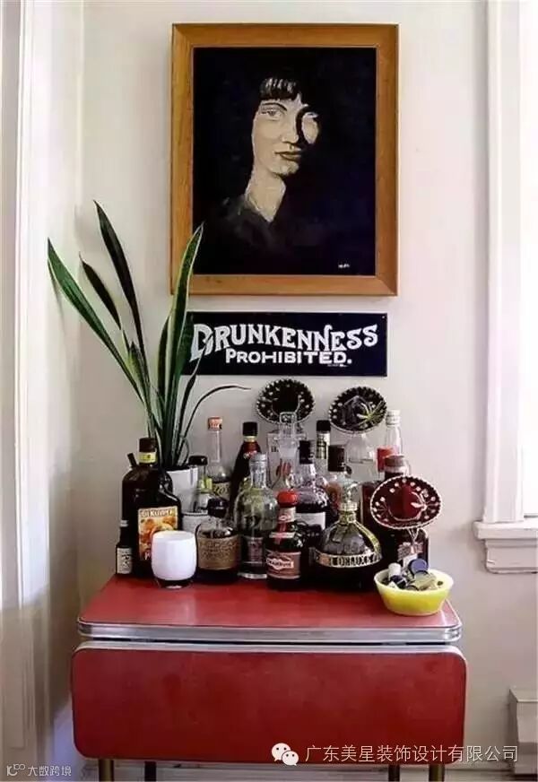 在家里找一个合适的角落,腾出大概一平方米的空间,摆上一张小木桌或者是推车、置物架,再在上面搁置咖啡机、咖啡豆、各式各样的酒,还有一些平时从四处淘来的瓶瓶罐罐和咖啡杯,这就打造出了一个充满文艺小资情调的迷你咖啡馆和酒馆。