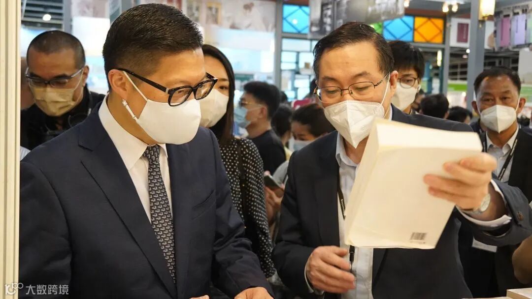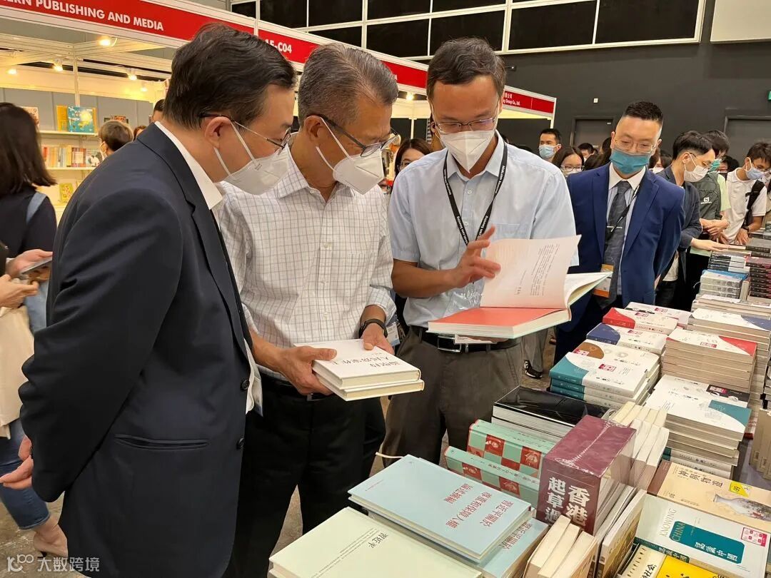 香港財政司司長陳茂波7月23日到訪香港三聯書店展位,聯合出版集團副董事長兼總裁李濟平陪同,三聯書店總經理葉佩珠和總編輯周建華講解重點書目。